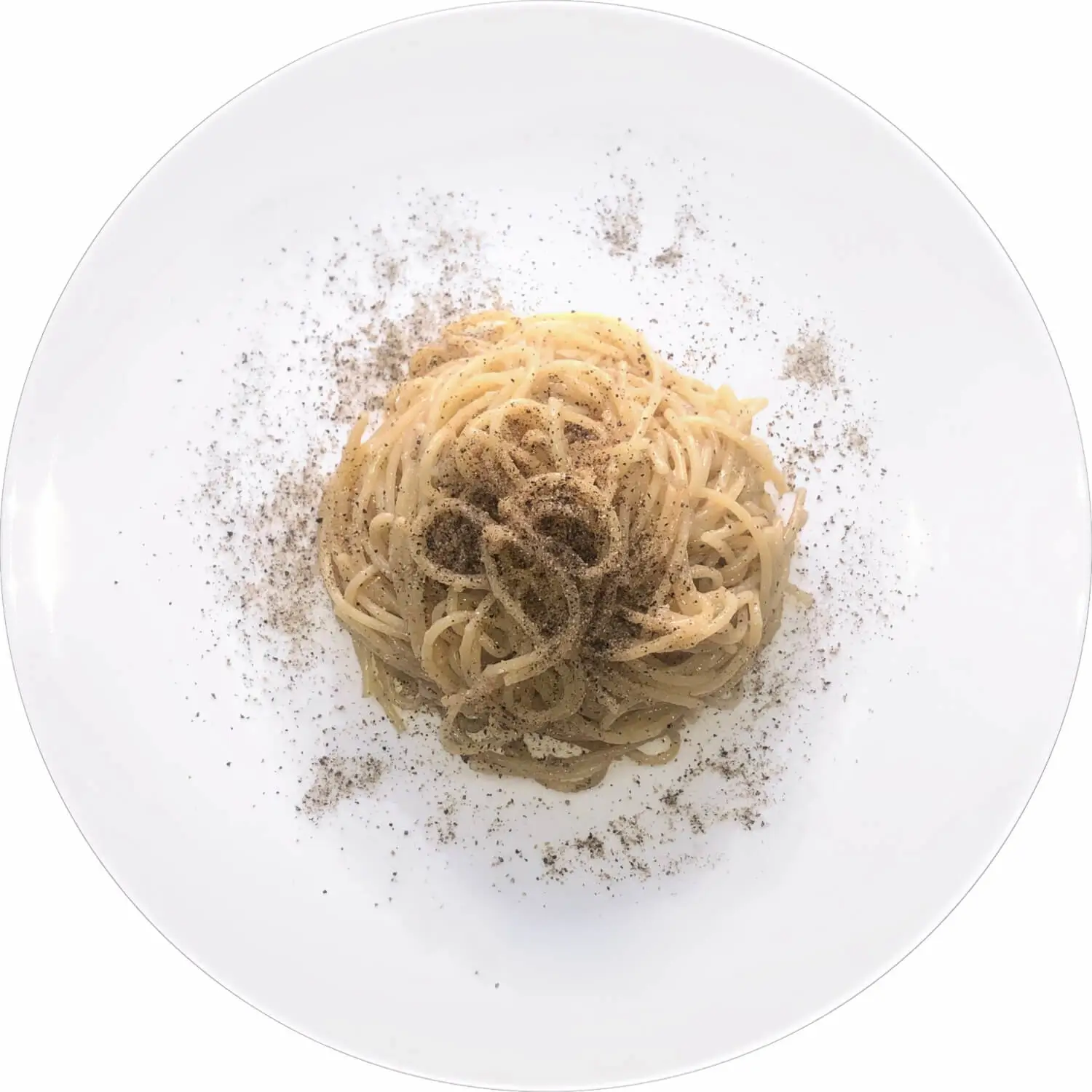 Spaghetti with black pepper and Pecorino Romano cheese.