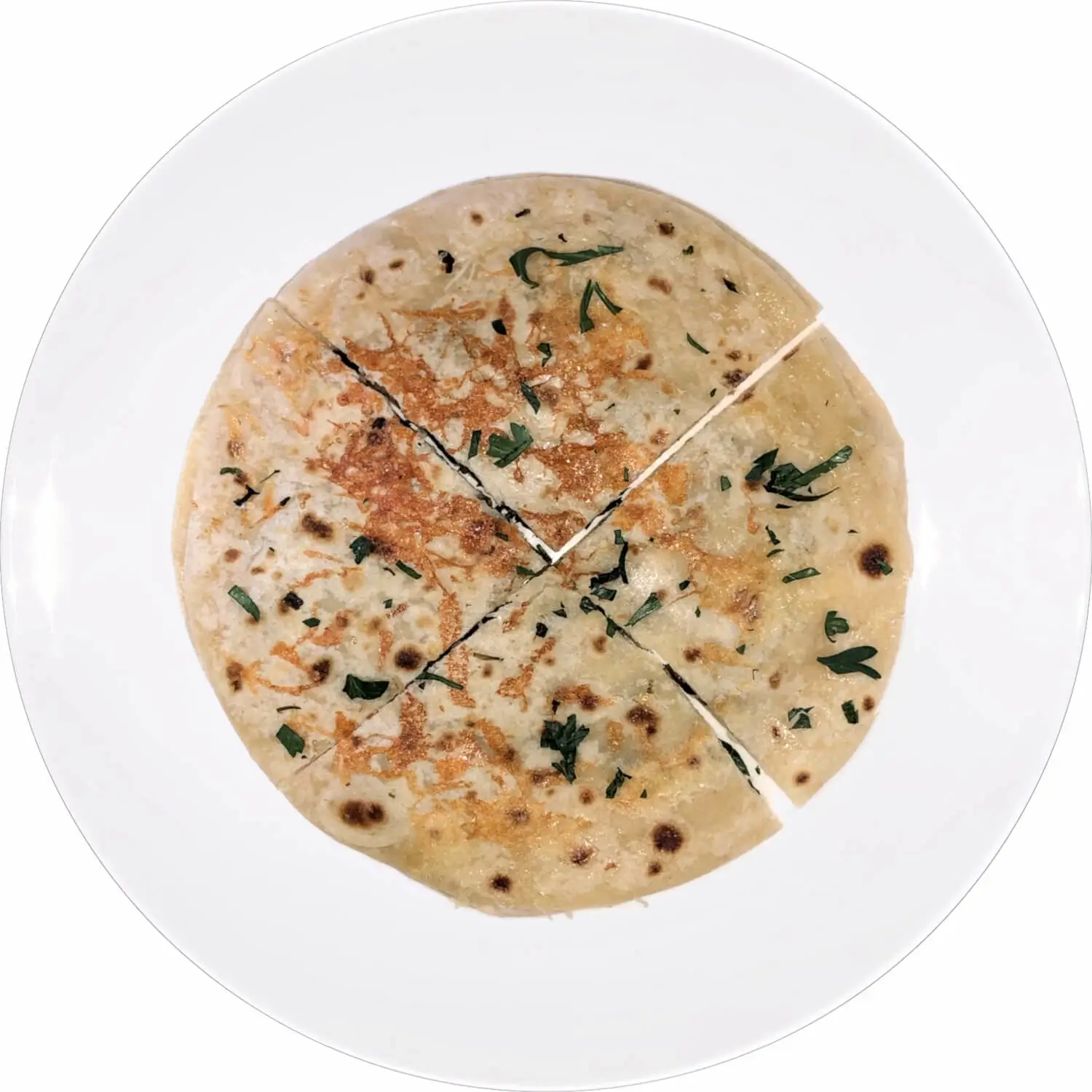Flat pitta with spinach, mushrooms in wine and goat cheese.