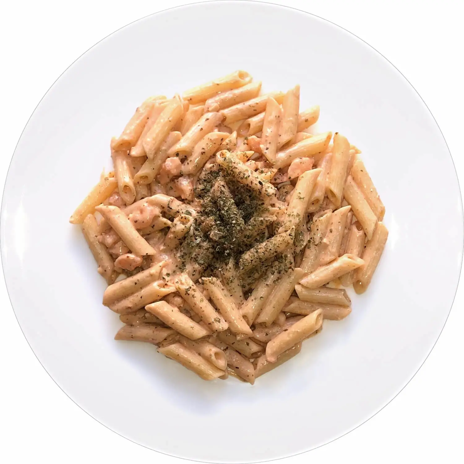 Тврди макарони са шкампима, бијелим луком и крем сосом.