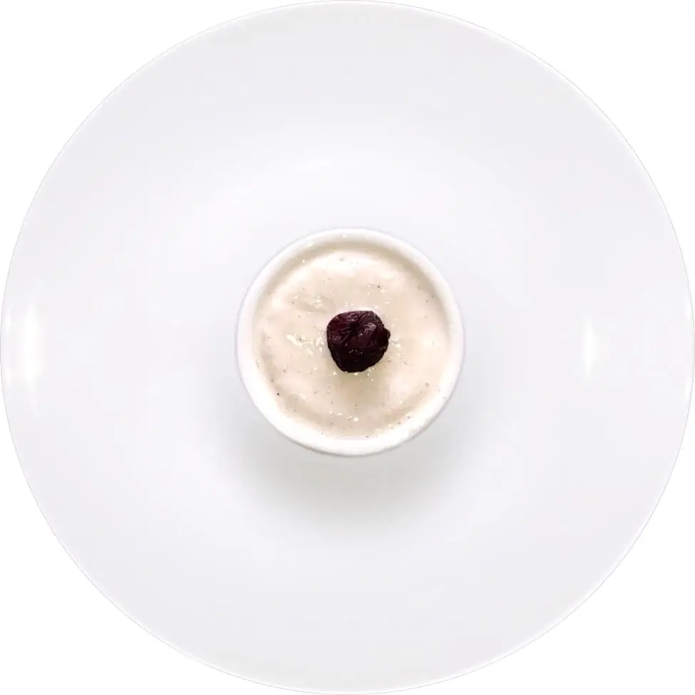 Једна кугла сладоледа од ваниле са вишњом на врху.